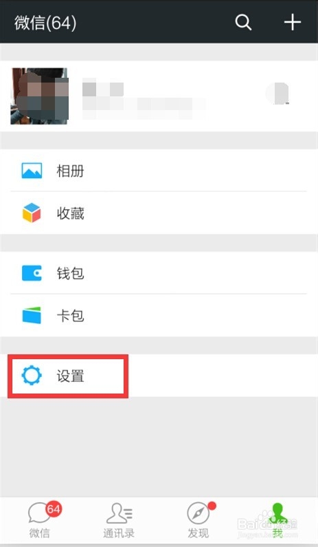 1、进入个人微信账号的个人中心页面,然后在个人中心页面找到“设置”功能,点击进入。