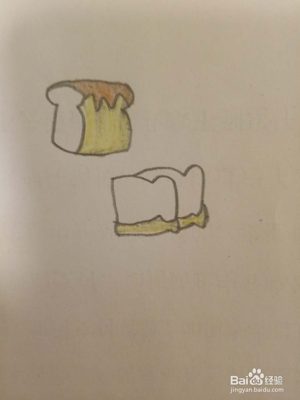 5/5然后涂上颜色,这样面包我们就画好啦!