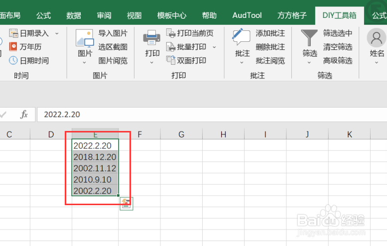 在excel日常办公中,我们经常会遇到我们需要将表格内的单元格中的日期格式来实现修改我yyyy年MM日dd日,我们可以利用excel软件内的DIY工具箱插件来实现操作,接下来我将用一个例子来为大家讲解应该如何操作。工具/原料moreexcel方法/步骤1/6分步阅读