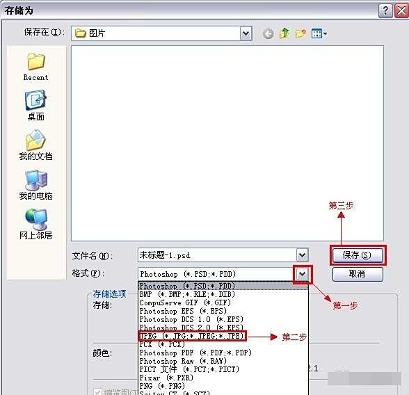 5,要选择图片保存的格式,点击“保存”后,又会弹出一个对话框,调整好图片的品质大小后,再点击“确定”即可。