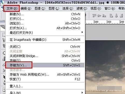 3,把这长图片保存一下,那么在保存的过程中,就可以来改变图片的容量大小。现在点击PS最上边的“文件”,再点击“储存为”。