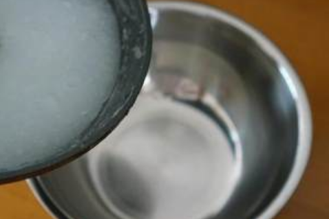 3、将水和淀粉慢慢搅拌均匀,调制出绿豆淀粉水