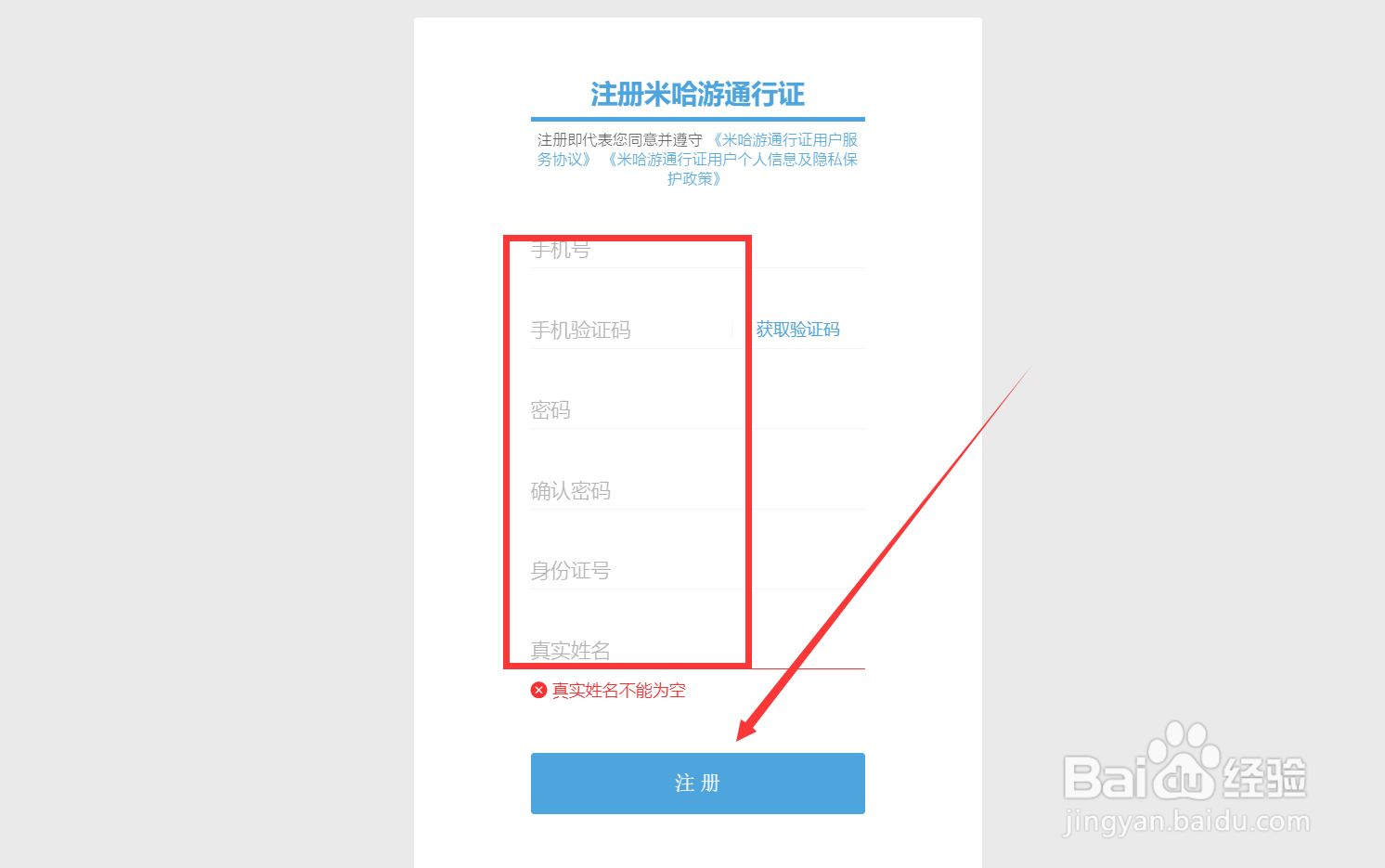 3/5需要注册米哈游通行证,填写手机号,手机验证码,密码,身份证号和真实姓名,然后点击注册打开