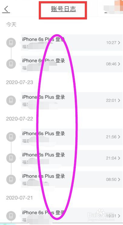 7/8进入“账号日志”页面,就可以看到近期自己账号的登录历史了。