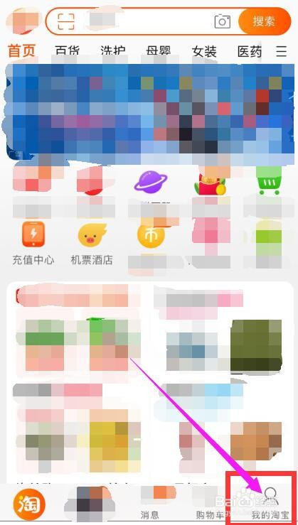 2/8在进入的“淘宝”页面,点该页面右小角的“我的淘宝”。