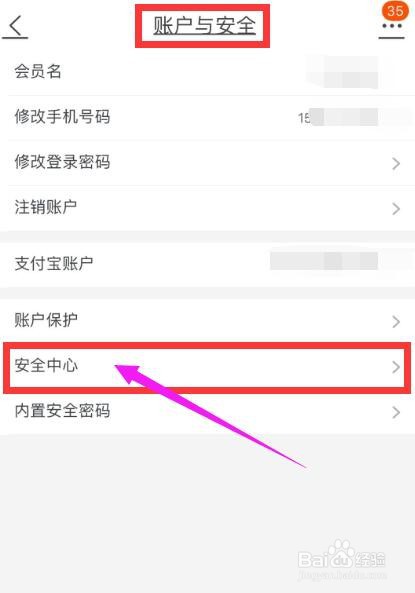 5/8进入“账户与安全”页面后,点“安全中心”。