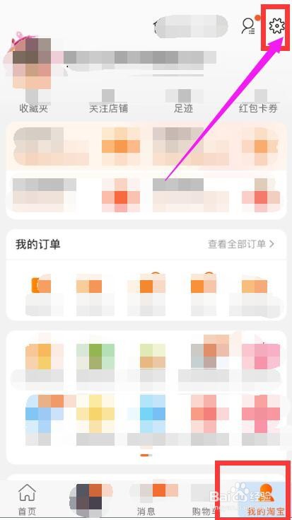 3/8进入“我的淘宝”页面后,点该页面右上角的“设置”图案。