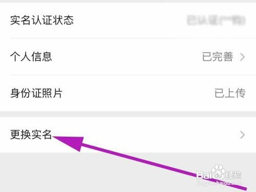 5/5在身份信息页面下,找到“更换实名”选项,点击进入即可更换实名认证的信息。