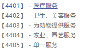 医疗服务;兽医服务;人或动物的卫生和美容服务;农业、园艺和林业服务。