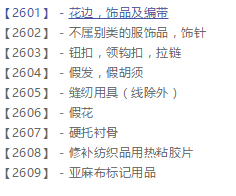 花边,编带和刺绣品,缝纫用饰带和蝴蝶结;纽扣,领钩扣,饰针和缝针;人造花;发饰;假发。