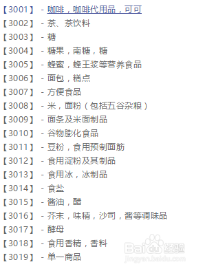 咖啡,茶,可可和咖啡代用品;米,意式面食,面条;食用淀粉和西米;面粉和谷类制 品;面包、糕点和甜食;巧克力;冰淇淋,果汁刨冰和其他食用冰;糖,蜂蜜,糖浆;鲜酵母,发酵粉;食盐,调味料,香辛料,腌制香草;醋,调味酱汁和其他调味品;冰(冻结的水)。