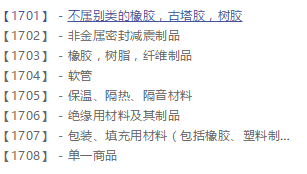 未加工和半加工的橡胶、古塔胶、树胶、石棉、云母及这些材料的代用品;生产用成型塑料和树脂制品;包装、填充和绝缘用材料;非金属软管和非金属柔性管。