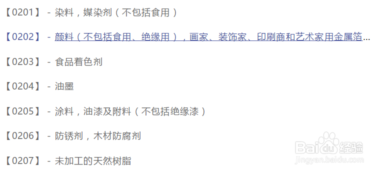 颜料,清漆,漆;防锈剂和木材防腐剂;着色剂,染料;印刷、标记和雕刻用油墨;未加工的天然树脂;绘画、装饰、印刷和艺术用金属箔及金属粉。