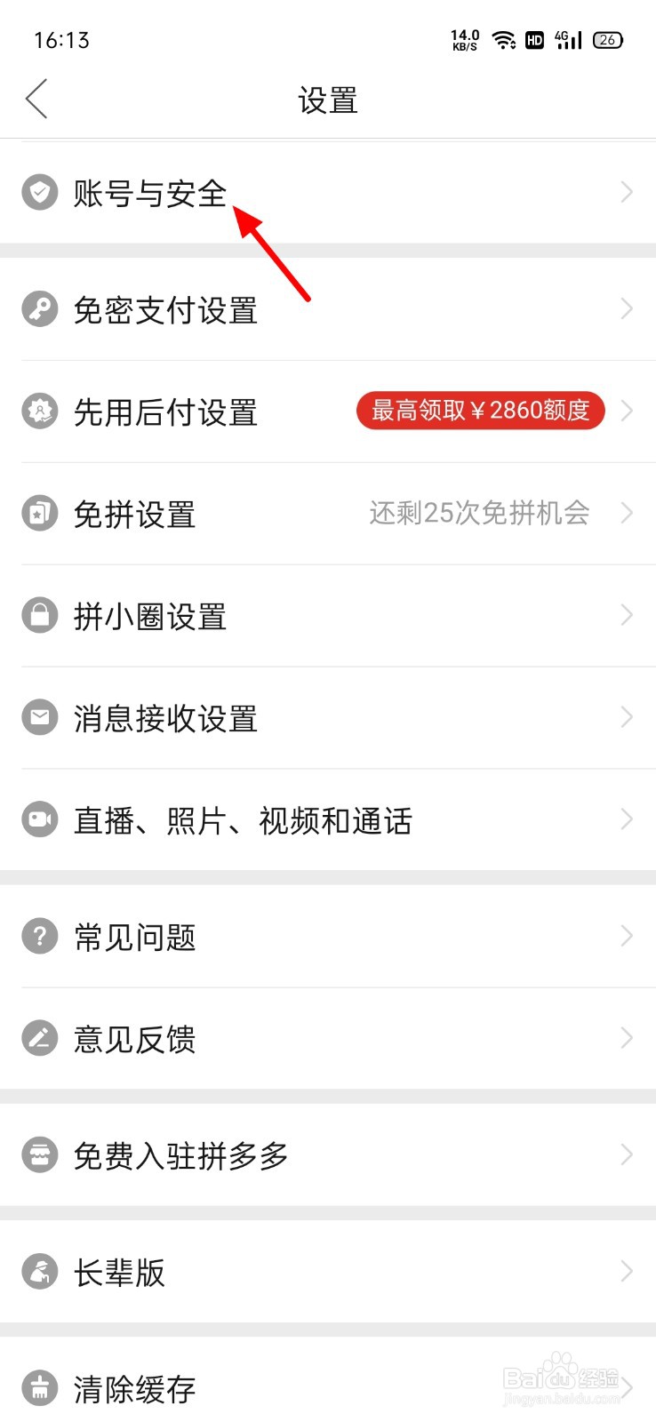 2/8在设置界面,点击【账号与安全】。