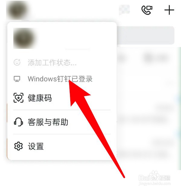 点击头像下拉上的Windows钉钉已登录的选项