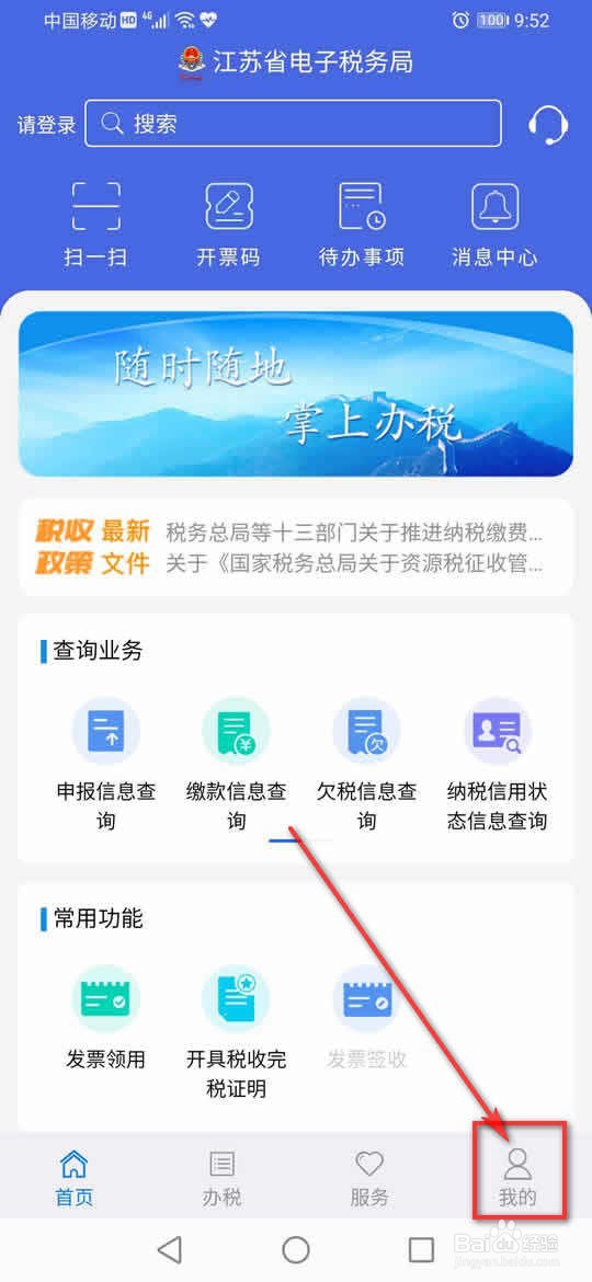 总结1/1第一步:点击进入“江苏税务”-“我的”-“登录”。
