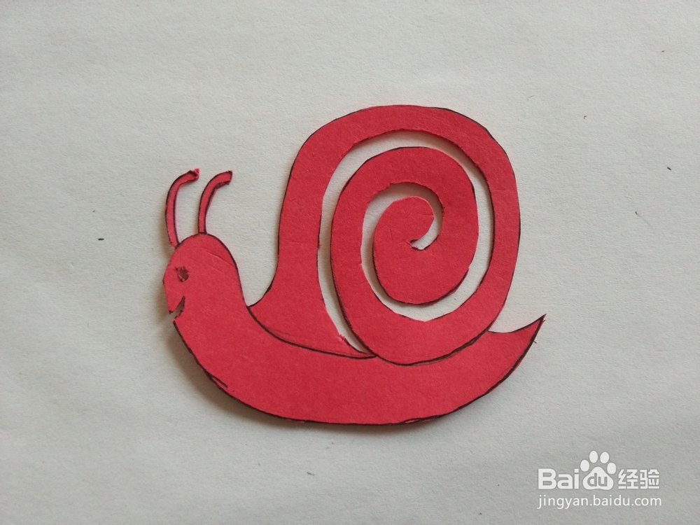 5/5接着将剪好的蜗牛展开来,这样两只蜗牛我们就剪好了,图为展开来的效果图: