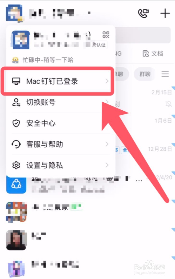 3/4然后弹出列表即可看到【Mac钉钉已登录】。