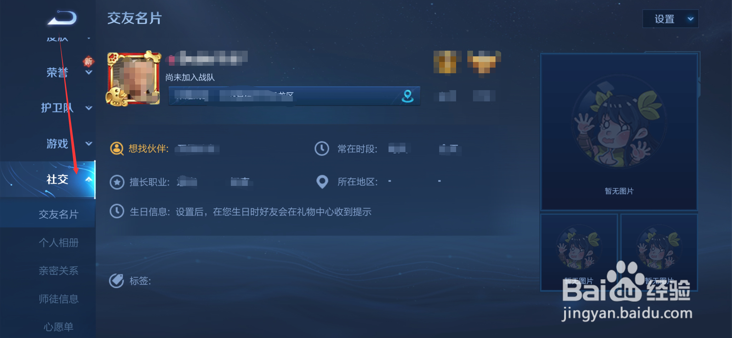 点击设置弹出编辑名片进行点击,即可填写生日日期,在生日那天即可弹出王者生日快乐。