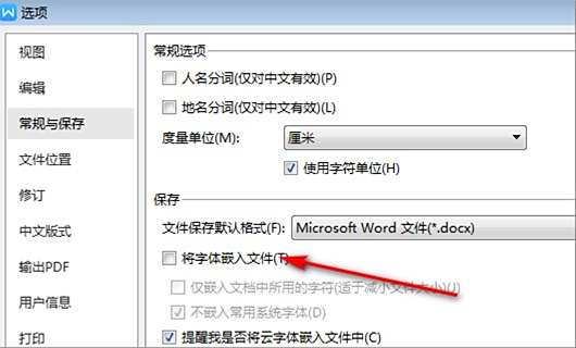 4、最后,完成上述步骤后,勾选“将字体嵌入文件”选项即可,然后单击“确定”按钮,如下图所示。这样,问题就解决了。