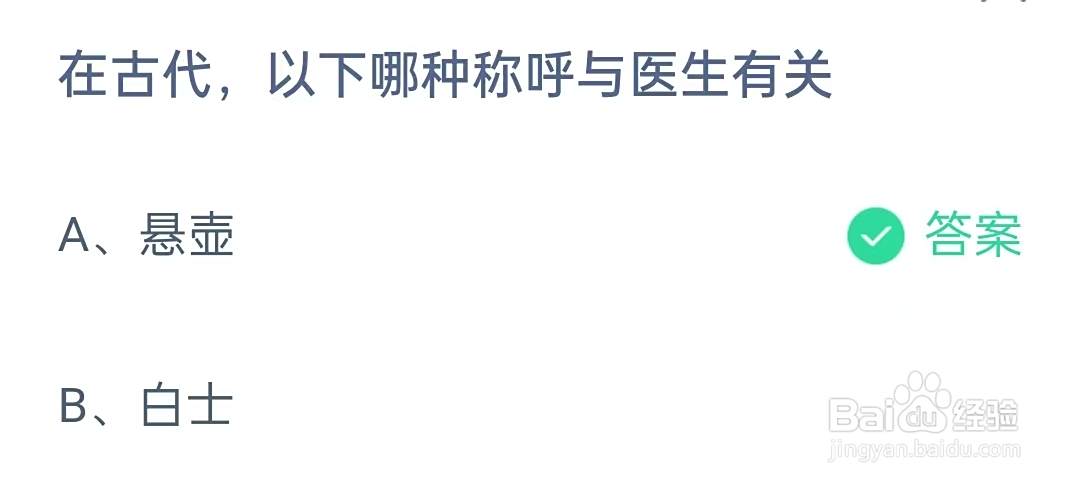 蚂蚁庄园11月10日问题,在古代,以下哪种称呼与医生有关?