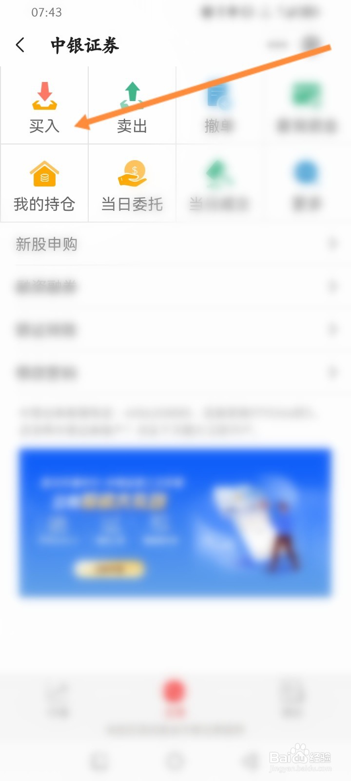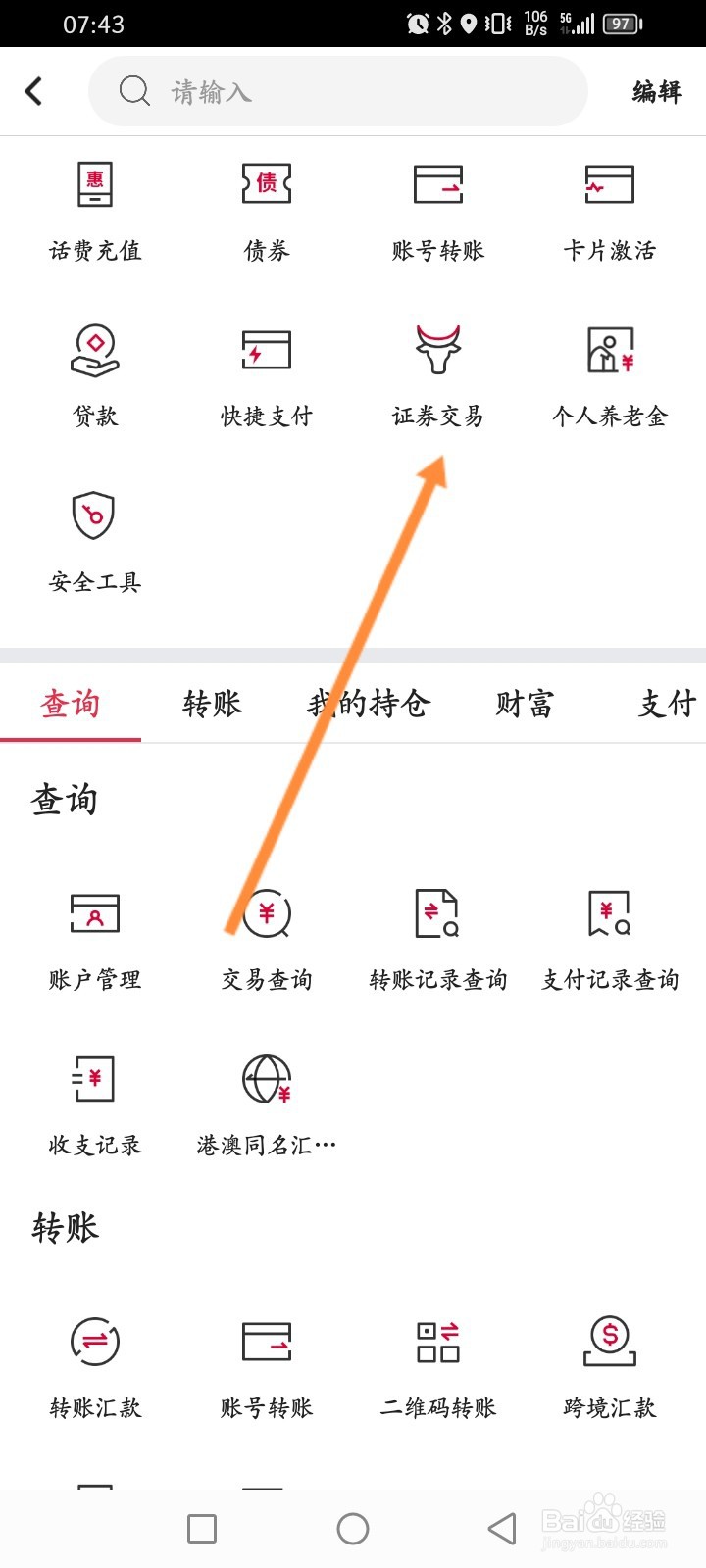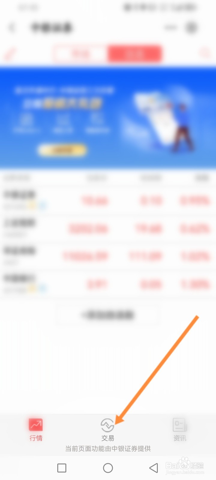 首先打开手机的中国银行软件,点击上面的证券交易选项。