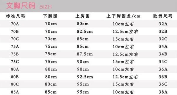 胸罩尺寸指女性下胸围,即沿女性乳根绕胸一周的长度。