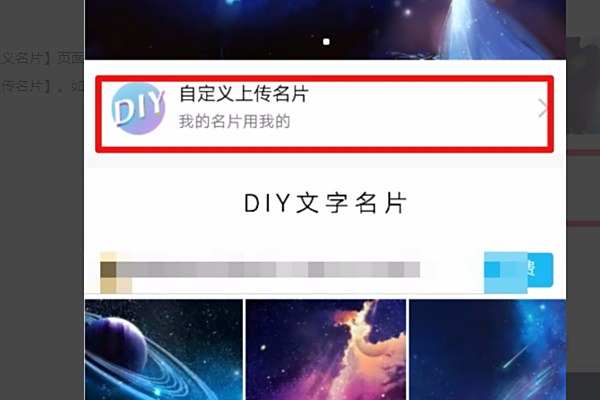 5、进入【自定义名片】页面后,点击【自定义上传名片】。