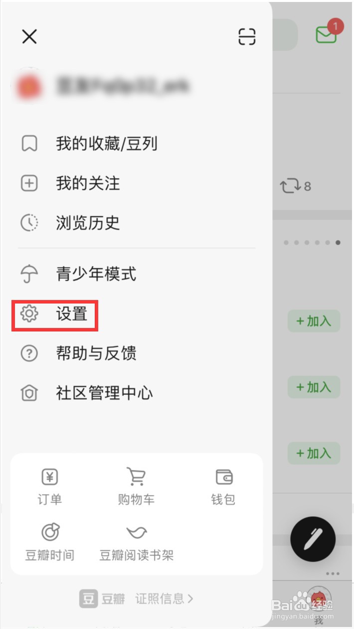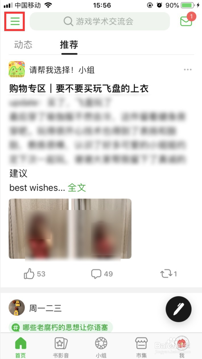 在豆瓣APP首页,点击左上角“三”菜单图标。