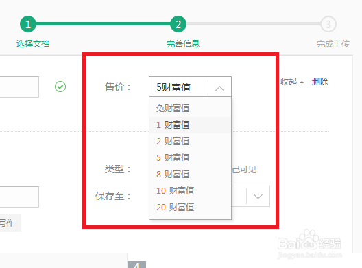 6/8这一步是最激动人心的,设置财富值,如果设为1,别的用户如果想要下载就需要消耗1个下载券。