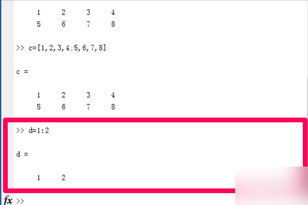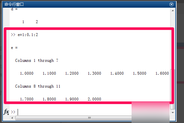 5、也可以使用一种更加自由的方式,创建间距固定的递增或递减数组。A=a:b:c表示从实数a到实数b以间隔为c递增或者递减,创造出数组A。使用这种方法创建数组时,数组A的第一个元素与最后一个元素分别是a和b,数组相邻两个元素之间的差值为c。