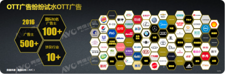 一般来说,OTT广告的广告主并没有非常明显的特殊特征,各行各业的广告主都纷纷试水OTT广告,并取得了显著的效果。2016年,共有500多家广告主尝试了OTT广告,其中包括国际知名广告主100多家,涉及了汽车、时尚、药品、母婴、互联网、家电等十多个行业。OTT广告正在以迅猛发展的姿态抢占广告市场。