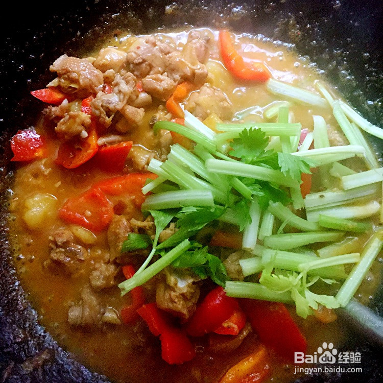 5/7烧制时务必来回翻炒 土豆易粘锅 适当加水 约15分钟后往锅中加入红椒 继续烧五分钟