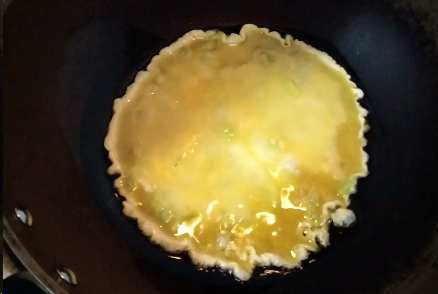 2、锅里放油,等油充分热后再倒入鸡蛋,等蛋液基本凝固后翻一下,都凝固后盛出。