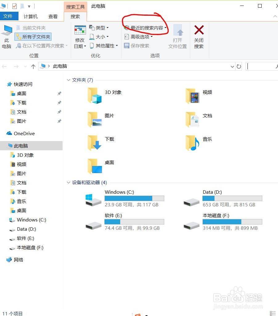 方法/还有一种方法1/3打开win10的文件管理,然后找到右边的搜索框,点击搜索框