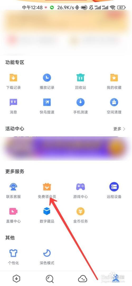 2/3第二步、之后在个人中心,点击免费领会员选项;