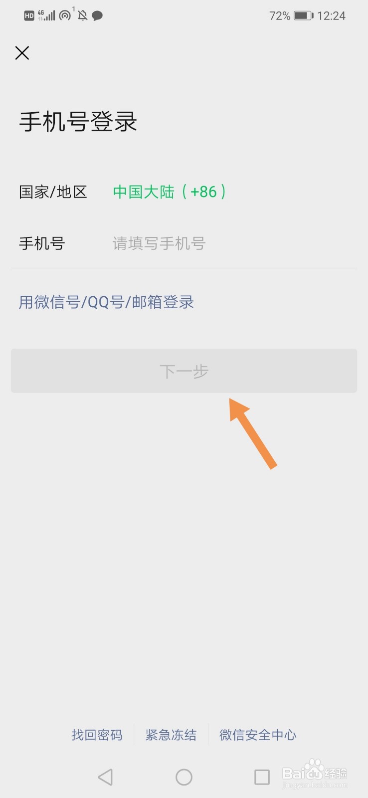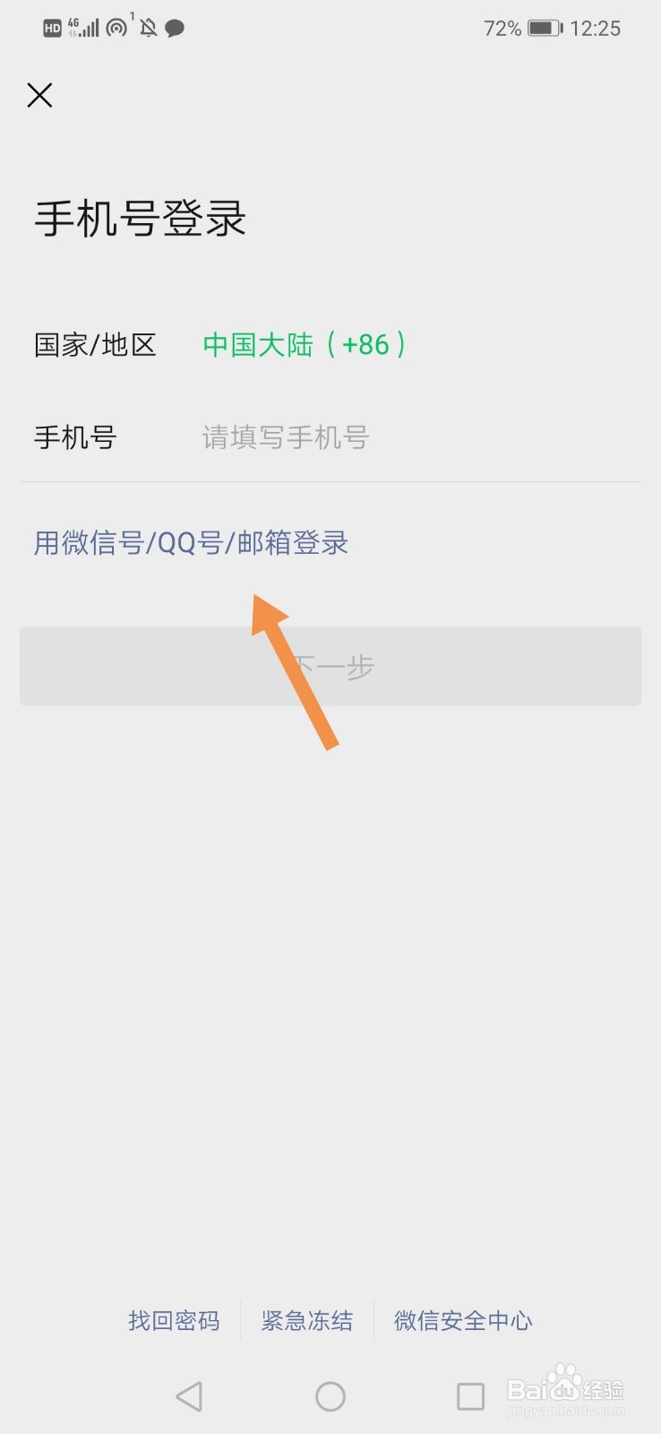 方法/步骤21/2除了用手机号登录外,还可以用微信号/QQ号/邮箱登录,点击“用微信号/QQ号/邮箱登录”。