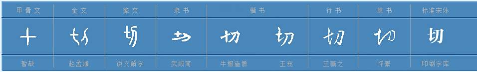 白话版《说文解字》:切,切断。字形采用“刀”作边旁,采用“七”作声旁。