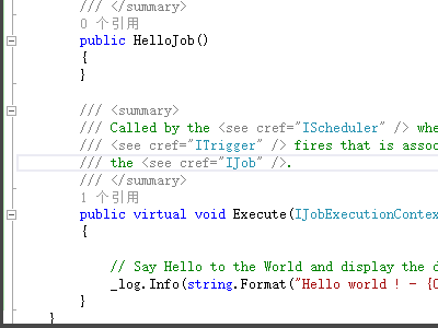 3、编写需要执行的任务逻辑,它继承了IJob接口,然后需要实现其中的Exxcute方法,任务逻辑的部分放在Execute里即可。
