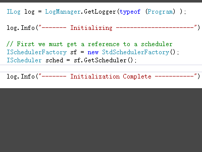 4、接下来开始编写定时任务程序,首先是初始化任务调度器,如下图所示。