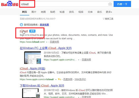 1、打开百度浏览器,在搜索框里面呢搜索iclohd,然后点击官网进入。