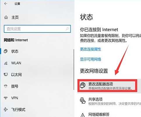 3、点击进入到“网络和Internet”界面之后,选择点击右边的“更变适配器选项”,如下图所示。