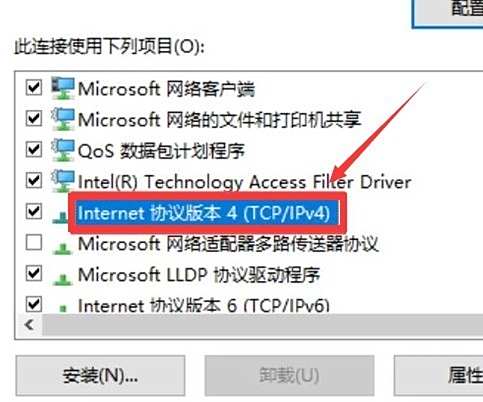 5、点击“属性”进入到新的操作界面,选择“Internet协议版本4(TCP/IPV4)”这个选项。
