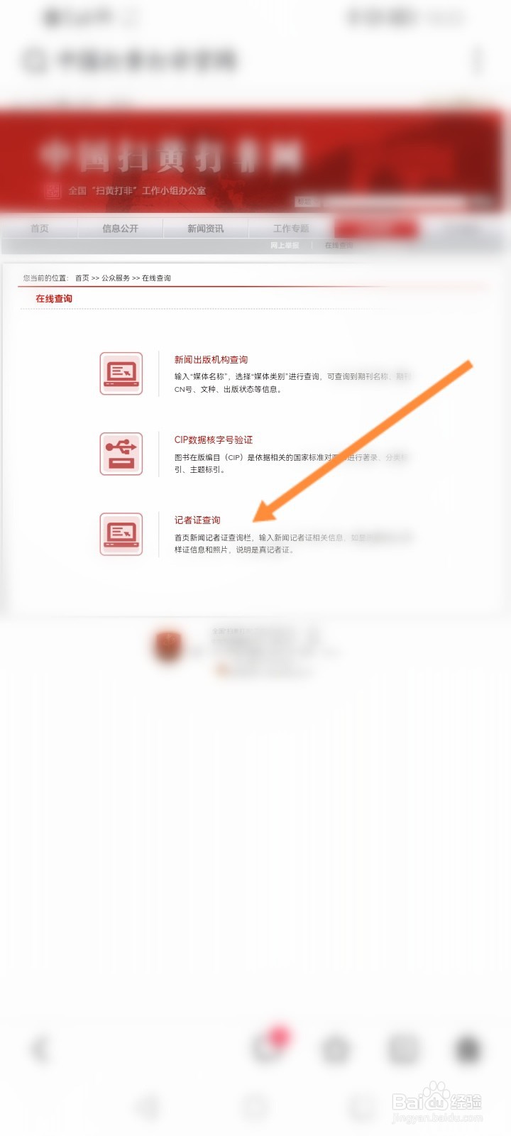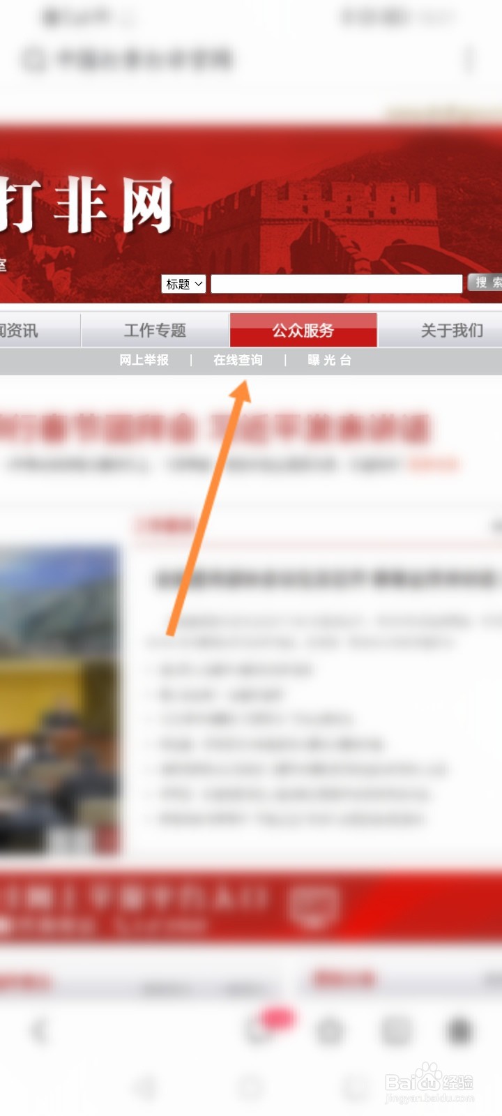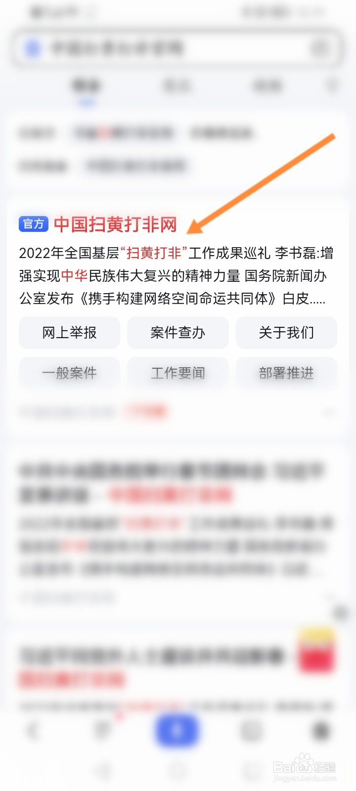 打开手机的百度,输入并点击中国扫黄打非官网。