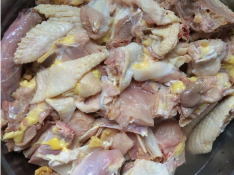 步骤一、将鸡洗净,剁成小块状。见下图: