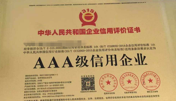 1、3A信誉企业:企业信用等级分为AAA、AA、A、B、C五个等级。
