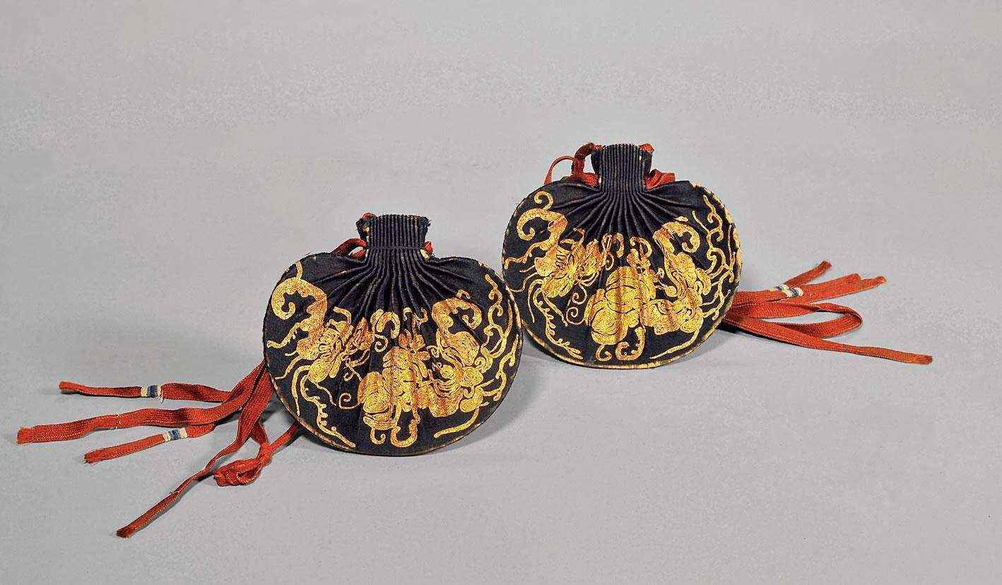 古代官员服饰。佩带作为衣饰的紫色的囊。