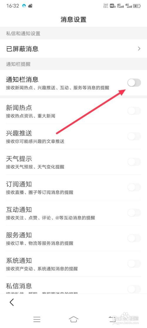 3/3第三步:在消息设置页面,关闭【通知栏消息】即可,如图所示。
