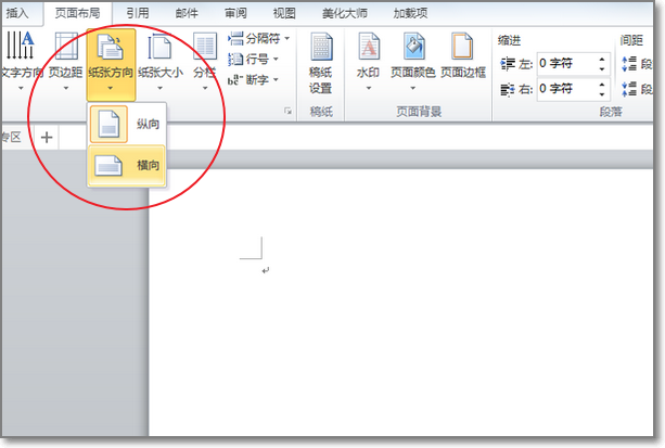 1,首先启动word2010,执行页面布局-纸张方向-横向命令。