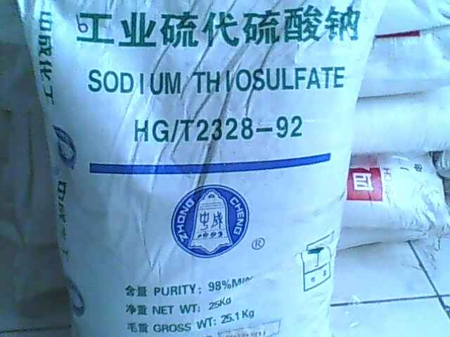硫代硫酸钠,又名次亚硫酸钠、大苏打、海波(来源于其别名 sodium hyposulfite)。它是常见的硫代硫酸盐,无色透明的单斜晶体。 硫代硫酸钠易溶于水,遇强酸反应产生硫和二氧化硫。